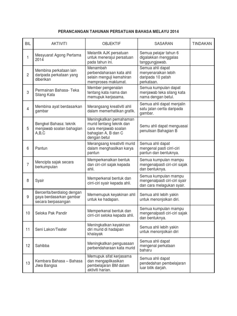 Perancangan Aktiviti Persatuan Bahasa Melayu Pdf
