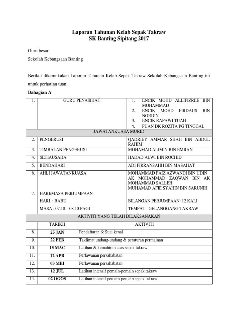 Laporan Tahunan Kelab Sepak Takraw Pdf