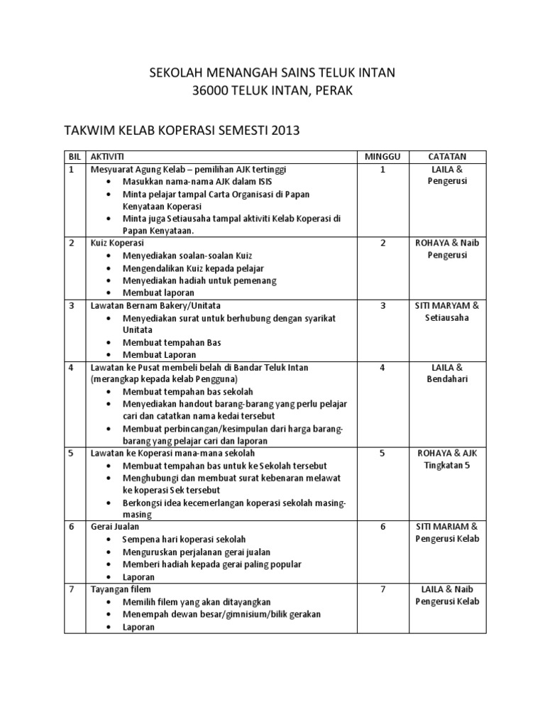 Takwim Kelab Koperasi Semesti 2013 Pdf