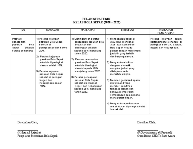 Pelan Strategik Bola Sepak 2020 Pdf