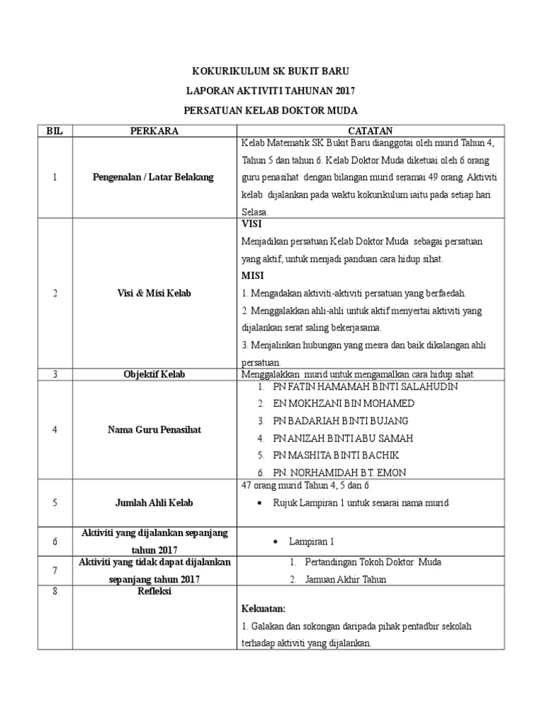 Format Laporan Aktiviti Tahunan Doktor Muda Pdf