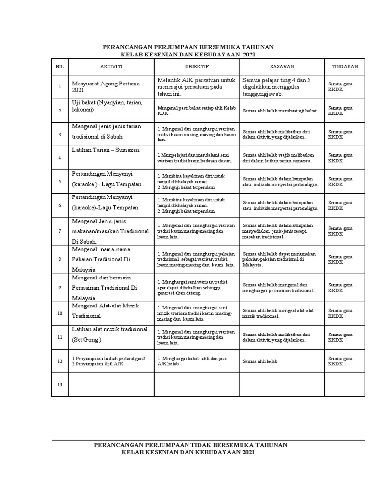 Rancangan Aktiviti Tahunan Kelab Kesenian Dan Kebudayaan 2021 Pdf