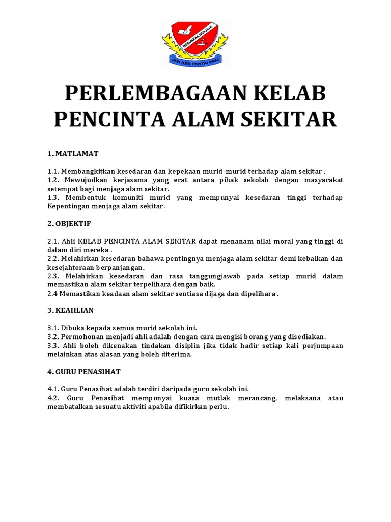 Perlembagaan Kelab Pencinta Alam Sekitar Pdf