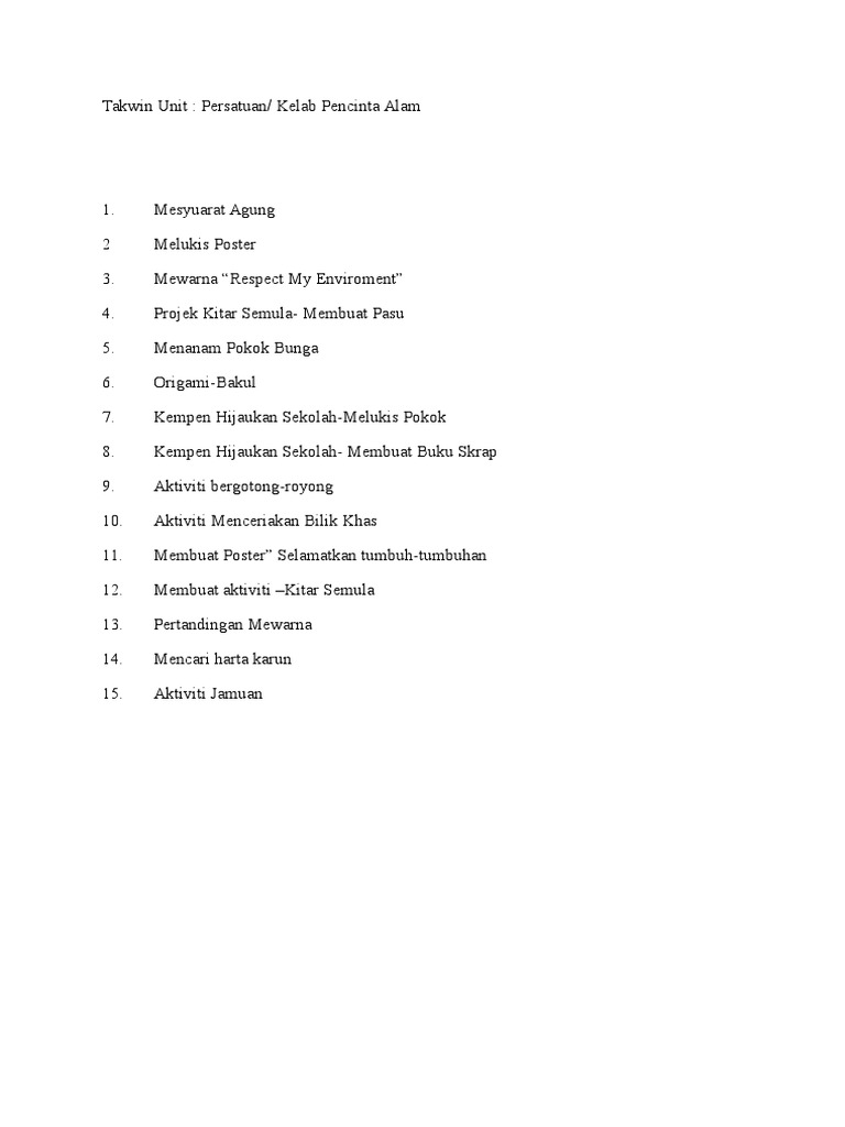 Bahasa Malaysia only KELAB PENCINTA ALAM SEKITAR PALS DAN PANDUAN MENULIS KERTAS CADANGAN. Jangan lupa share kepada kawan2 ya pada group whasapp dan telegramKlik sahaja button share tersebut. Keseimbangan antara perkembangan mental akademik dengan perkembangan sosial jasmani dan rohani pelajar.